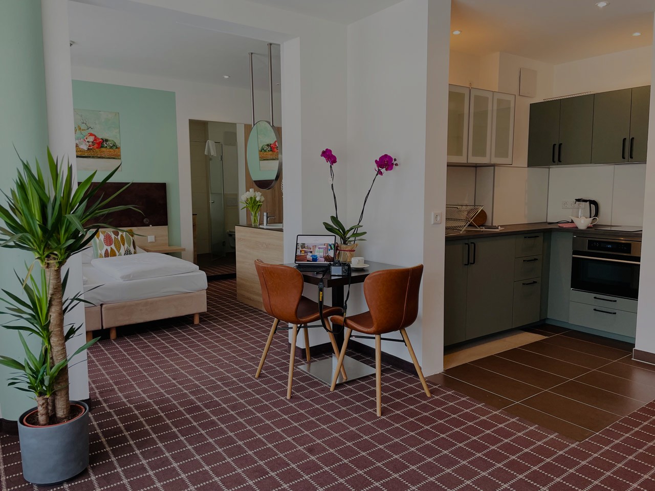 Unser gemütliches und lichtdurchflutetes Appartement „Soho“ bietet für 2 Personen auf 40 m² Wohnkomfort in gemütlichster Form. Dieses Appartement ist mit einem gemütlichen Kingsize-Boxspring-Bett, das zum Ausschlafen verführt, offenem Duschbad mit bodengleicher Dusche und einer vollausgestatteten Einbauküche, eingerichtet. Auch das Arbeiten im Homeoffice ist durch ein stabiles Breitbandinternet und einer schönen Arbeitsecke mit Schreibtisch und ausreichenden Elektroanschlüssen möglich. Die Küche ist mit allem, was man für einen längeren Aufenthalt benötigt, ausgestattet.